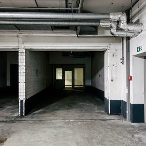 Im Gebäude VTW 2 liegt im Untergeschoss ein wahrer historischer Schatz verborgen! Nicht für die Öffentlichkeit zugänglich, dennoch lassen wir Euch gerne mal einen Blick reinwerfen! Die ehemalige Geldtransportanlieferung der HypoVereinsbank erfolgte durch den Untergrund. Ein riesiges unterirdisches, parkhausähnliches Geschoss für LKWs, die damals das Geld anlieferten.